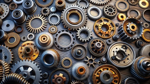 Action gears background with diverse mechanical parts, mechanical, gears, machinery, technology, industrial, background