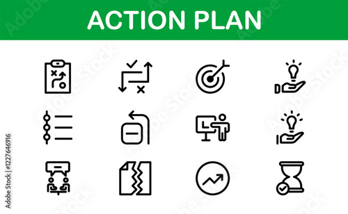 Action Plan Icon Set. Clean, Professional Graphics for Workflow, Business Strategy, and Productivity Tools