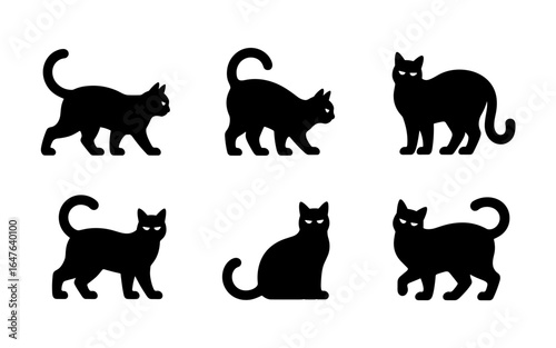 Action-Packed Silhouette Cats Playing, Graphic Illustration, Modern Design, Art, Whimsical