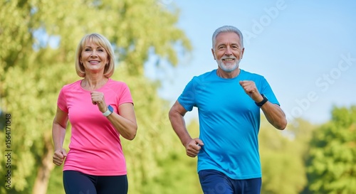 Active mature caucasian couple enjoying a jog in the park