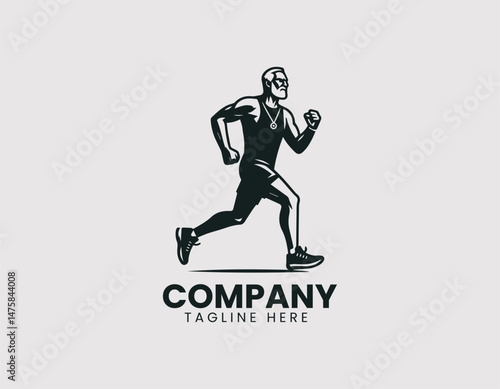 Active Senior Man Jogging in Sportswear Vector Logo Design, Elderly Man Running in Athletic Wear Vector Logo
