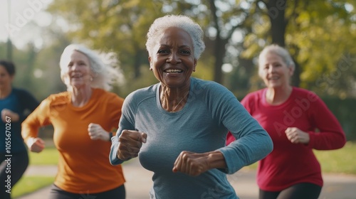 Active Seniors with Diverse Skin Tones Exercising Outdoors in a Vibrant Park Setting