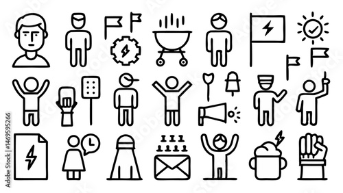 Activism and protest icons in line style perfect for social movements awareness campaigns and modern advocacy designs with high clarity vector illustrations