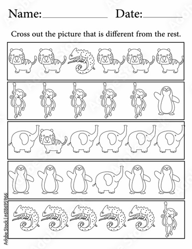 Activity Pages for Kids | Activity Worksheets for Critical Thinking | Find the Different Animal