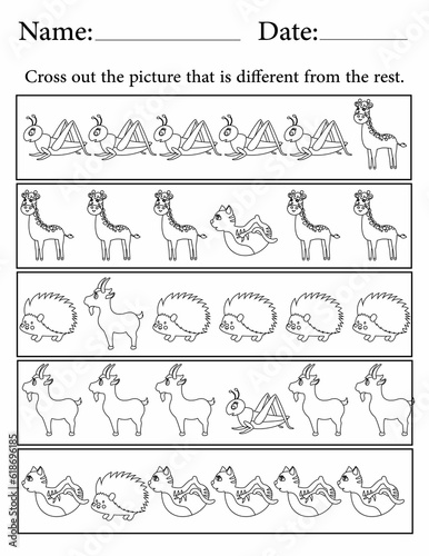 Activity sheet for Kids | Activity Worksheets for Logical Thinking | Find the Different Animal