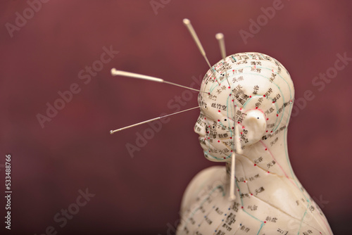 Acupuncture Model Energy Meridians Message Banner. acupuncture dummy showing meridians and space for copy.