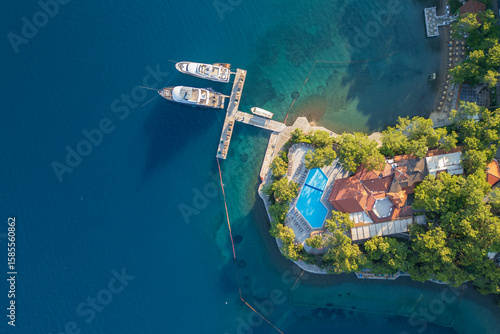 Adakoy Coastline drone view in Marmaris Town of Turkey