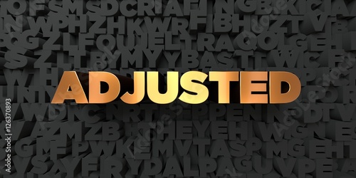 Adjusted - Gold text on black background - 3D rendered royalty free stock picture. This image can be used for an online website banner ad or a print postcard.