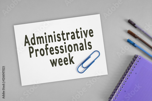 Administrative Professionals week greeting card template. Last full week of April. Close-up, view from above. Concept of preparation for professional holiday. Congratulations for employee, colleagues