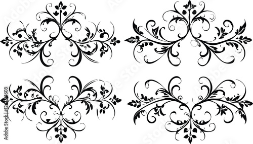 Adobe IllustraFloral Corner Decoration Elements - Black and White Vector Arttor Artwork