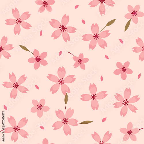 Adobe Illustrator Artwork pattern of cherry blossoms, using small, delicate flowers with minimal lines.