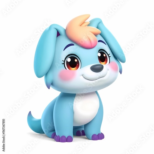 Adorable 3D Cartoon Puppy: A charming light blue puppy with pastel orange hair, big brown eyes, and rosy cheeks sits and smiles. Perfect for children's products, websites, and apps.