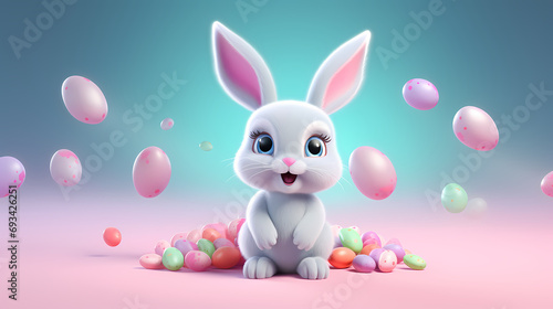 Adorable 3D Easter bunny icon with pastel eggs on gentle backdrops, perfect for holiday gifting and decor