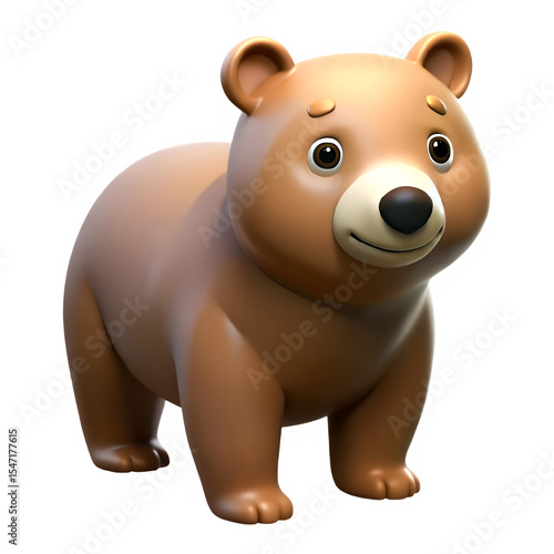 Adorable 3D Render of a Brown Bear Cub Standing, Friendly Expression