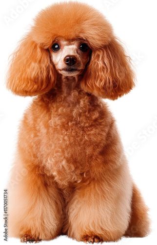 Adorable Apricot Toy Poodle Puppy Dog Sitting Fluffy Coat Studio Shot