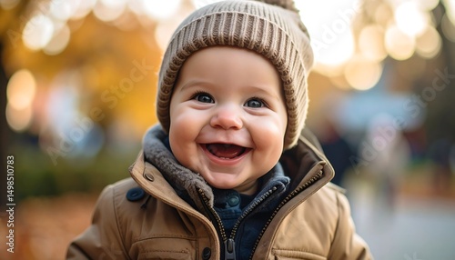 Adorable Baby Boy Smiling Outdoors in Autumn