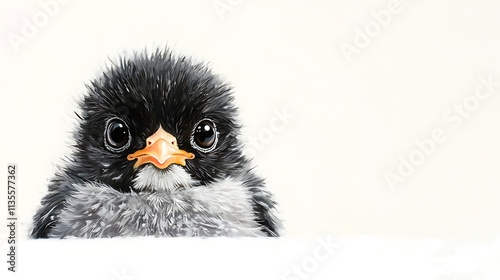 Adorable Baby Chick Portrait: A Close-Up of a Fluffy Black and Gray Chick
