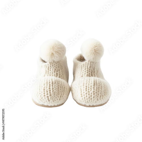 Adorable Baby Knit Booties with Pompoms - Cream