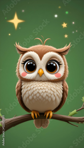Adorable Baby Owl on Branch