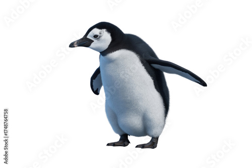Adorable baby penguin, fluffy white and black feathers, standing on transparent background. background removed