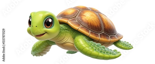 Adorable Baby Sea Turtle Swimming Underwater Cartoon Image