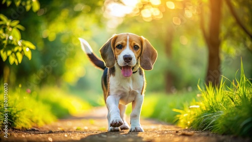 Adorable Beagle Puppy Summer Park Stroll - Rule of Thirds Composition