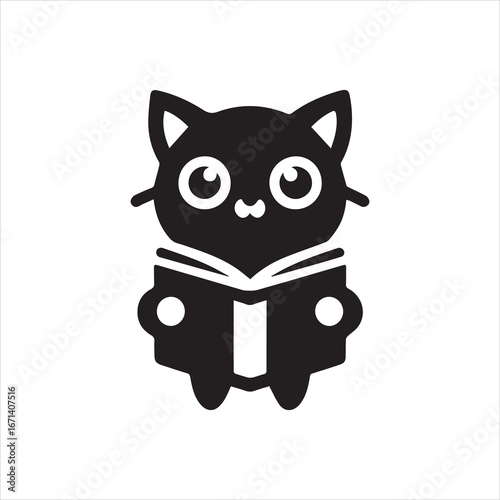 Adorable Black Cat Reading a Book Simple and Cute Illustration.
