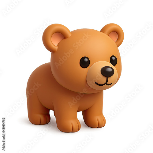 Adorable Brown Bear Cub 3D Render on Dark Background