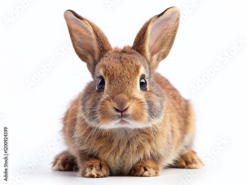 Adorable Brown Bunny Rabbit Isolated on White Background - Cute Pet Animal Stock Photo