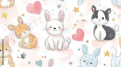 Adorable Bunnies Dogs Hearts Stars Pattern Design