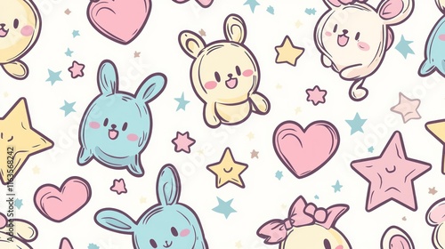 Adorable Cartoon Bunnies Hearts and Stars Pattern