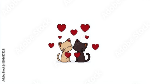 Adorable cartoon cats in love with hearts surrounding them, showcasing affection and friendship in a cute and playful style perfect for animal lovers and romantic themes.