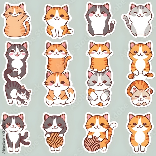 Adorable Cartoon Cats Stickers: A Collection of Cute Feline Illustrations