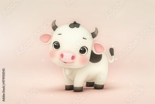 Adorable cartoon cow isolated on white background for cute animal themes.