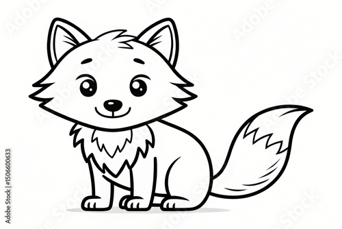 Adorable Cartoon Fox Cute Animal Coloring Page Illustration Happy Wildlife Sketch Kids Drawing