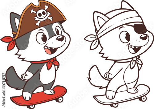 Adorable Cartoon Husky Puppy Pirate and Skater Designs