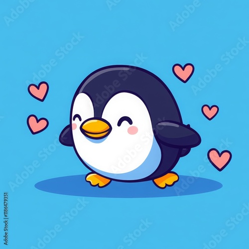 Adorable Cartoon Penguin Character Happy Cute Love Hearts Illustration