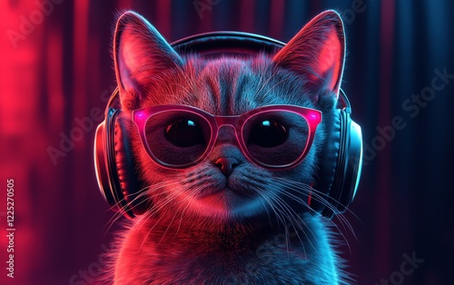 Adorable cat with oversized glasses and stylish headphones, funny expression, AIgenerated art, playful and quirky design, ultrarealistic details, 8K resolution, soft glowing effect