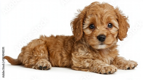 Adorable Cavapoo Puppy Fluffy Dog Cute Pet Portrait Brown Dog White Background
