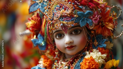 Adorable Child Dressed as Lord Krishna with Sparkling Water Splash for Janmashtami Festival