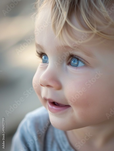 Adorable Child with Bright Blue Eyes and Joyful Expression