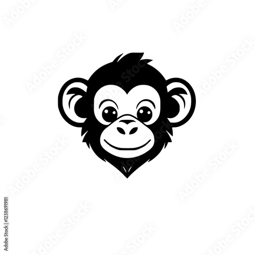 Adorable Chimpanzee Cartoon: A Happy Primate Portrait. Perfect for children's books, logos, and playful designs. Vector illustration, black and white.