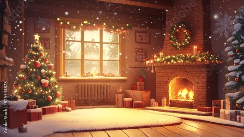 Adorable Christmas eve character cartoon. A collection of 2D Christmas images and characters. Santa Claus, snowman, house, and trees in a Christmas wallpaper.