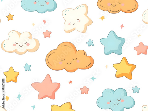 Adorable Cloud and Stars Pattern with Pastel Colors for Kids' Decor and Design