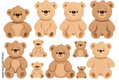 Adorable collection of cute cartoon teddy bears in various sizes and poses.