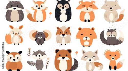Adorable Collection of Forest Animals on White Background for Wildlife Concept Design