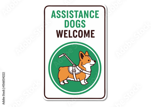 Adorable Corgi Assistance Dog with Harness Welcoming Sign Illustration.