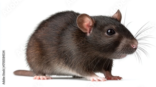 Adorable Dark Brown Pet Rat Walking Sideways, Showcasing Playful Agility and Captivating Cuteness Perfect for Social Media Campaigns or Lifestyle Branding, Evoking a Sense of Whimsy and Joy.