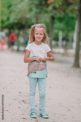 Adorable fashion little girl outdoors in the Tuileries Gardens, Paris