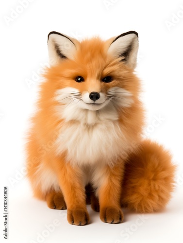 Adorable Fox: A stunning image of a playful fox, a vibrant creature with fiery orange fur, sitting regally, its engaging gaze and fluffy tail against a bright background, evoking warmth, charm.